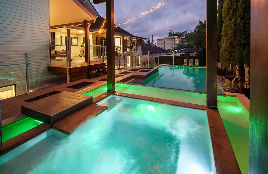 The 4-bedroom Kings Coastal Haven Villa Caloundra is located about a 5-minute walk from Shelly Beach and provides a private swimming pool, ensuring a relaxing stay.